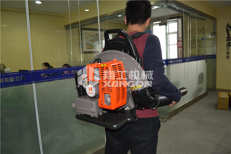 背負(fù)式馬路吹風(fēng)機(jī)以小型風(fēng)冷二沖程汽油機(jī)為動力,帶動風(fēng)葉高速旋轉(zhuǎn),在導(dǎo)風(fēng)罩殼引導(dǎo)下形成強(qiáng)力風(fēng)束,通過加長風(fēng)管和風(fēng)嘴輸出。
