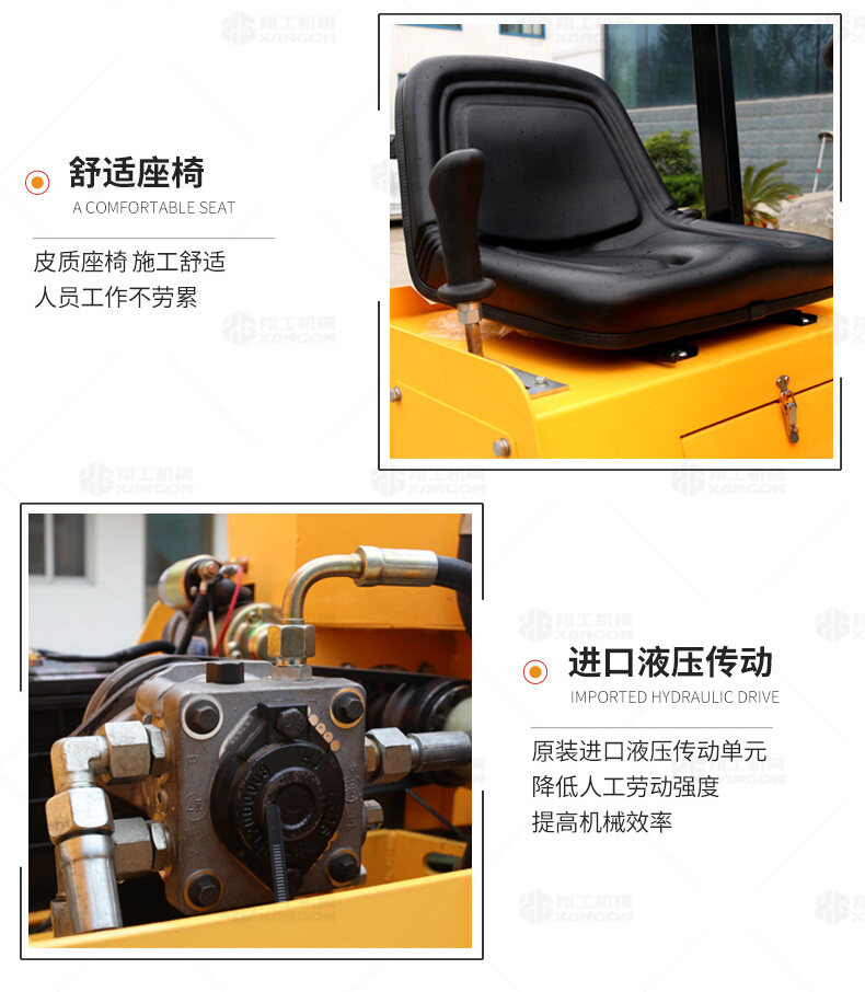 XYL-860座駕壓路機(jī)適用于各種溝槽沙土回填壓實(shí)、高層建筑地下室土方壓實(shí)、小區(qū)道路基礎(chǔ)壓實(shí)、各種草坪壓實(shí)、修補(bǔ)及各種小型工程的使用,解決了大型壓路機(jī)無法工作區(qū)域的壓實(shí)作業(yè)。
