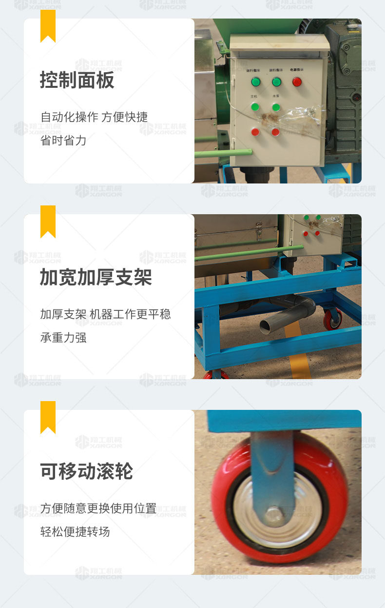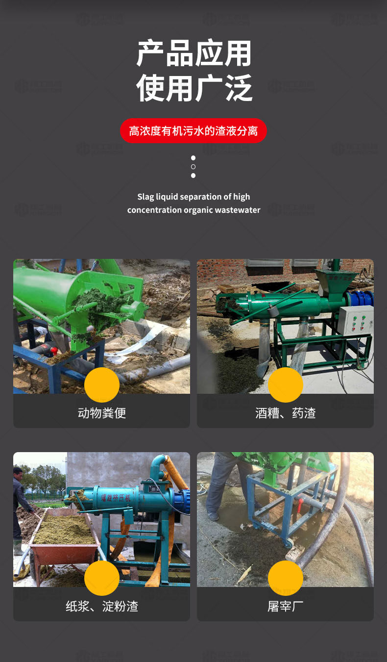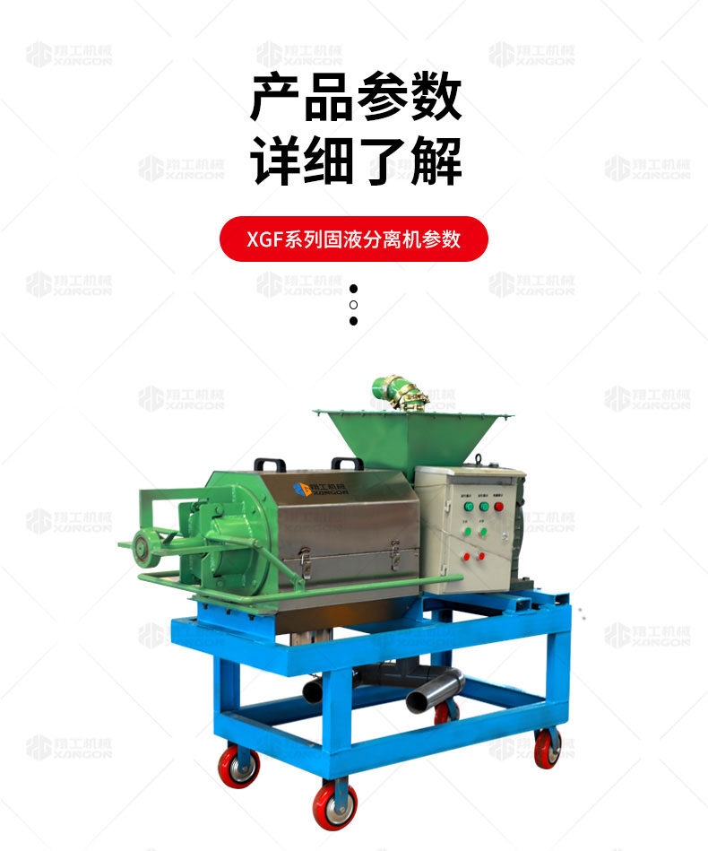 XGF系列固液分離機可廣泛做為雞、牛,馬及各類集約化養(yǎng)殖場對紙漿、動物糞便、酒糟、藥渣、淀粉渣、醬渣、屠宰廠等高濃度有機污水的渣液分離。