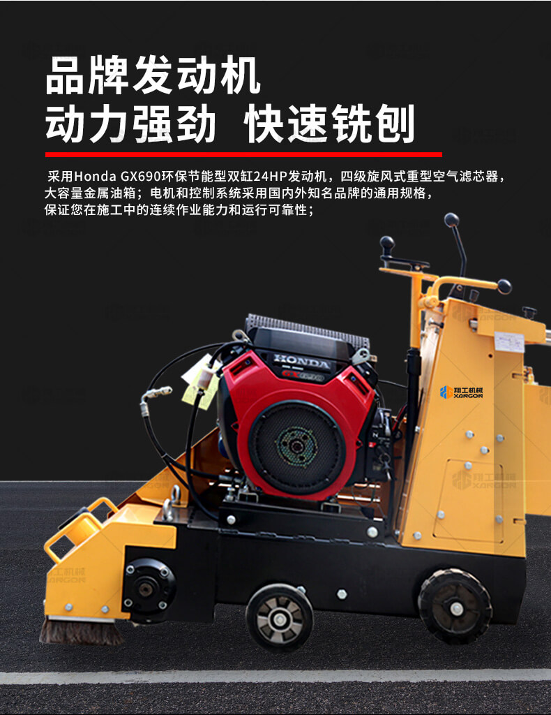 小型液壓銑刨機(jī)采用Honda GX690環(huán)保節(jié)能型雙缸24HP發(fā)動(dòng)機(jī),四級(jí)旋風(fēng)式重型空氣濾芯器,大容量金屬油箱;采用名優(yōu)電機(jī)和控制系統(tǒng),保證您在施工中的連續(xù)作業(yè)能力和運(yùn)行可靠性;