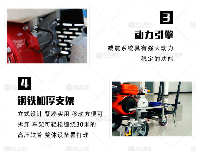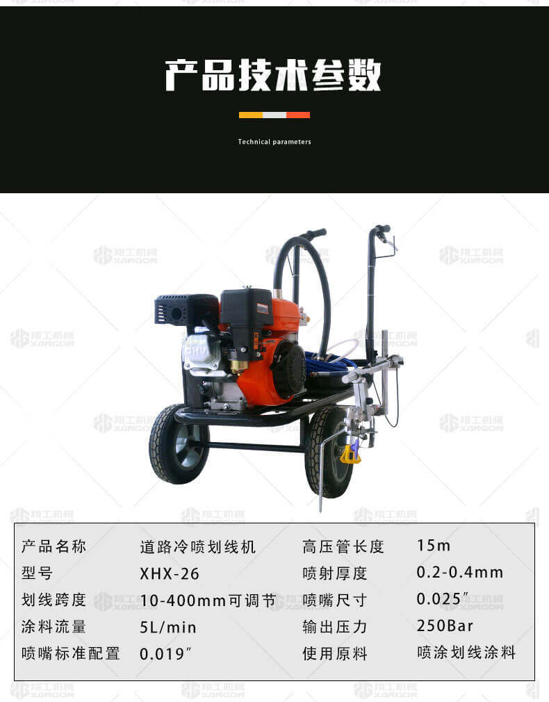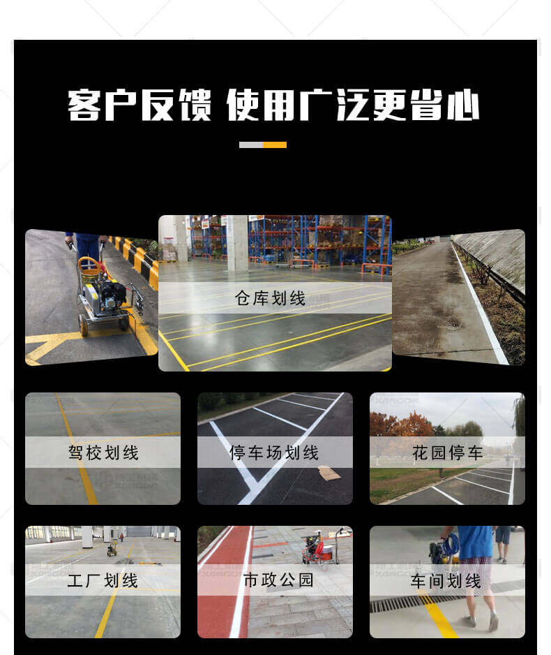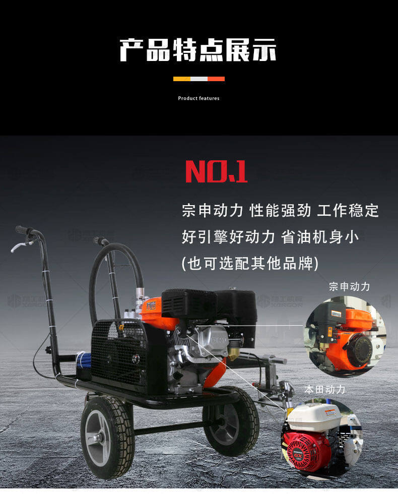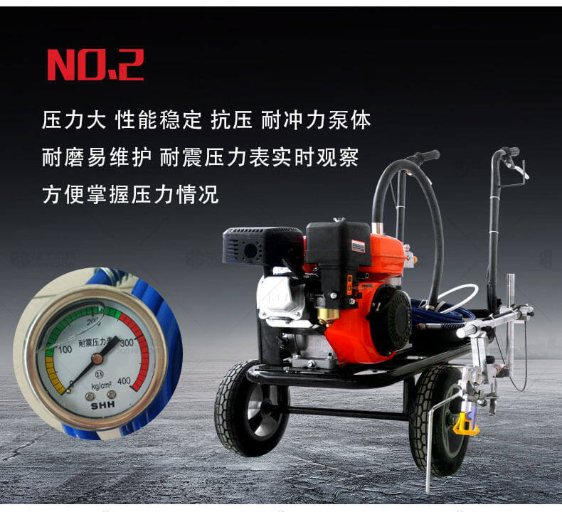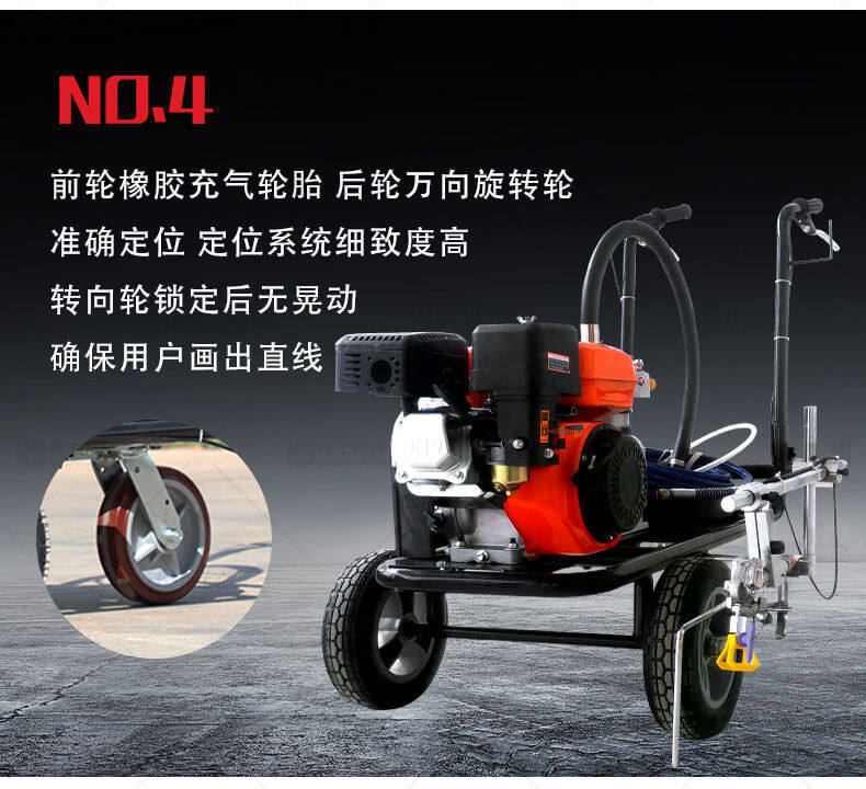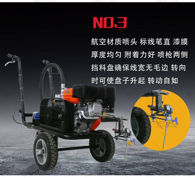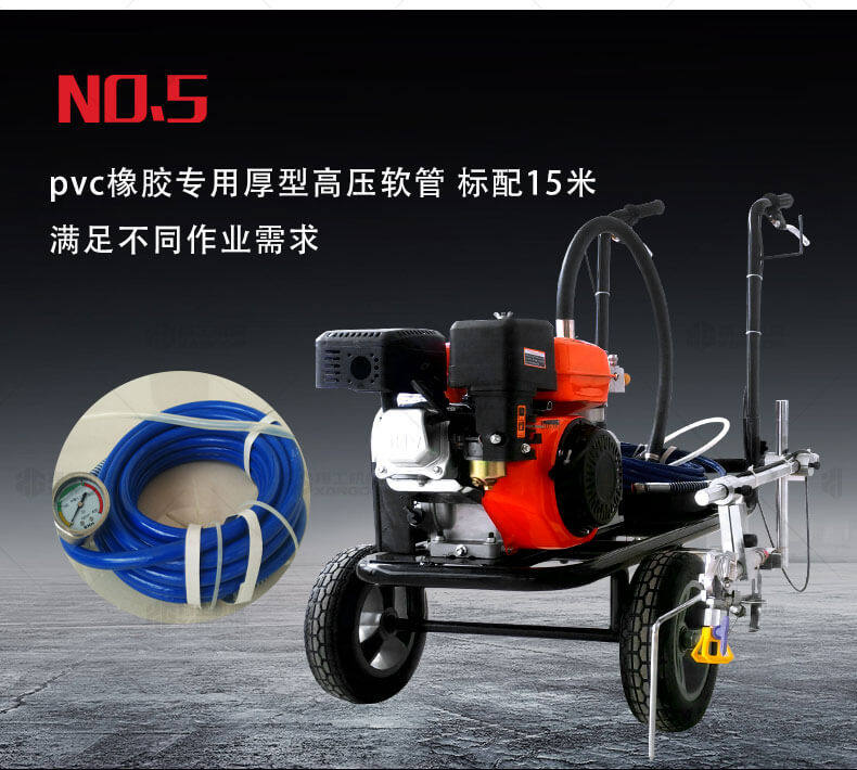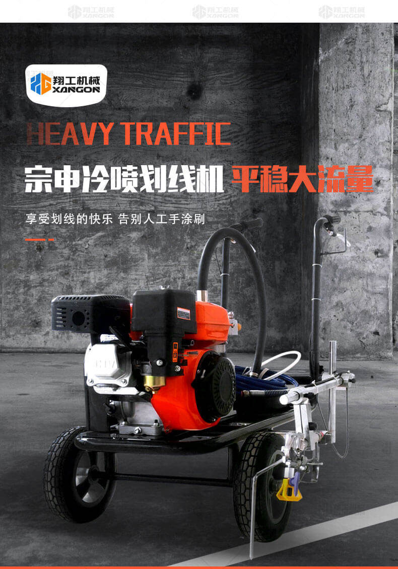 冷噴劃線機(jī)用汽油機(jī)帶動(dòng)高壓泵的無氣噴涂技術(shù)運(yùn)用于運(yùn)動(dòng)場(chǎng)地劃線車,噴出的線型清晰、流暢、飽滿、均勻、工作效率高。