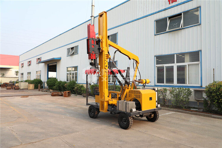 小四輪打樁機是護欄打拔鉆一體機的同類產(chǎn)品,也是用于公路波形護欄的安裝。該機采用柴油動力,全液壓機械傳動,具有行駛輕便、打樁精度高、經(jīng)久耐用、節(jié)能環(huán)保等特點,特別適用于公路護欄安裝、維修和搶修的野外工程施工。