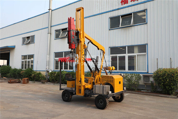 小四輪打樁機適用于公路護欄鉆孔、打樁、拔樁,其他各種場地打樁(農(nóng)場、園林、果園),公路野外工程施工。