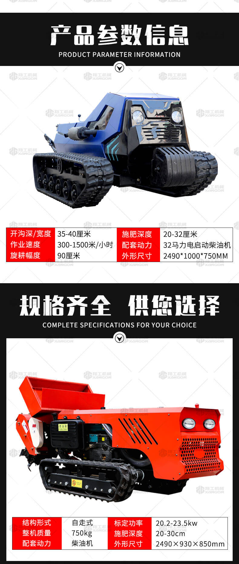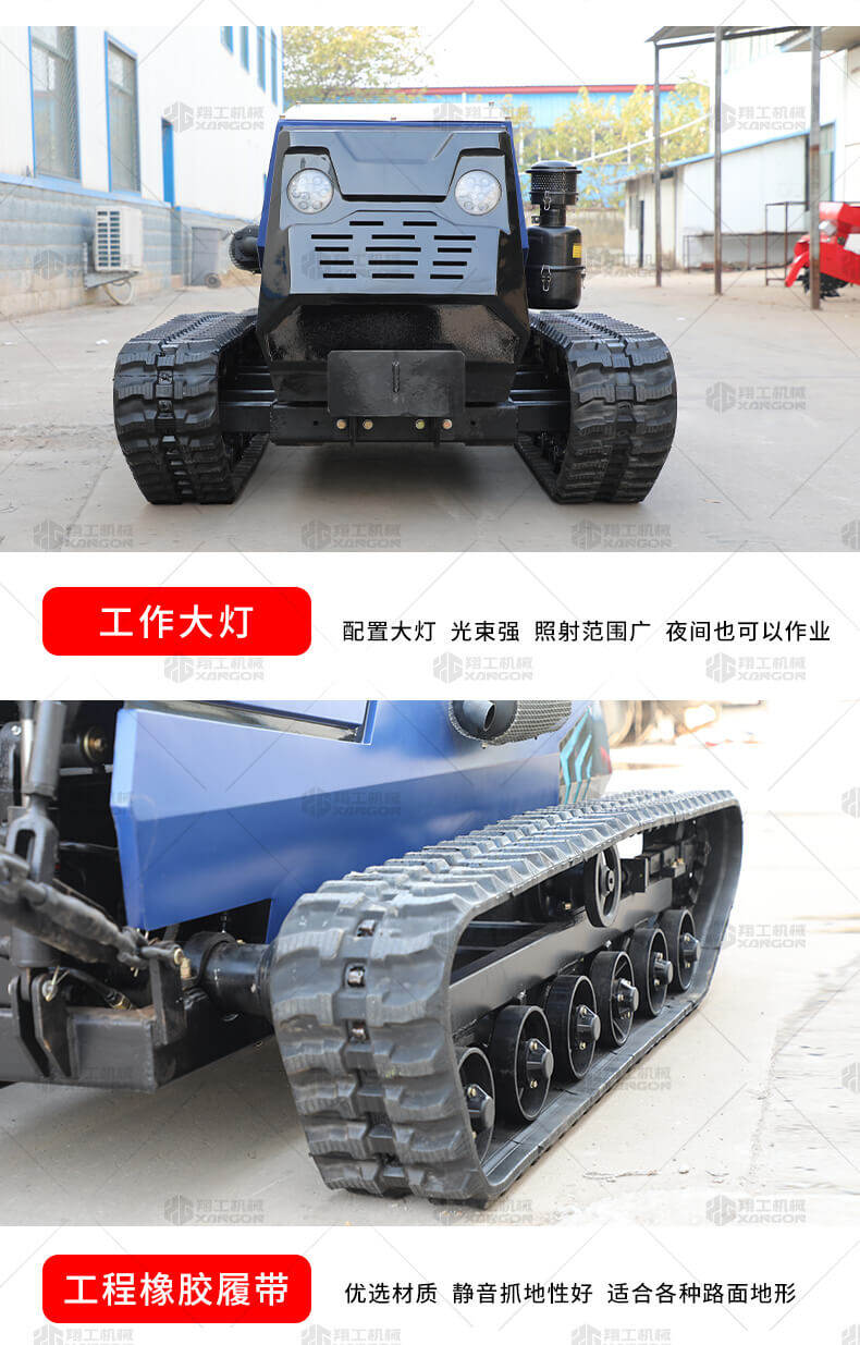 本產(chǎn)品采用履帶式驅(qū)動(dòng)設(shè)計(jì),穩(wěn)定性和爬坡能力較強(qiáng),適應(yīng)丘陵山地平原各種地形,機(jī)型小功率大,適應(yīng)各種行距的果樹,大棚,園林。產(chǎn)品動(dòng)力強(qiáng)勁,結(jié)實(shí)耐用,性能優(yōu)越,安全放心,遠(yuǎn)程操控,省心省力。