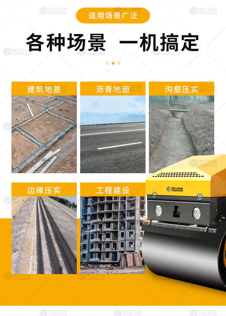 主要用于溝渠基礎(chǔ),道路,體育場地的壓實(shí)整平,也可用于壓實(shí)瀝青表面的作業(yè)。