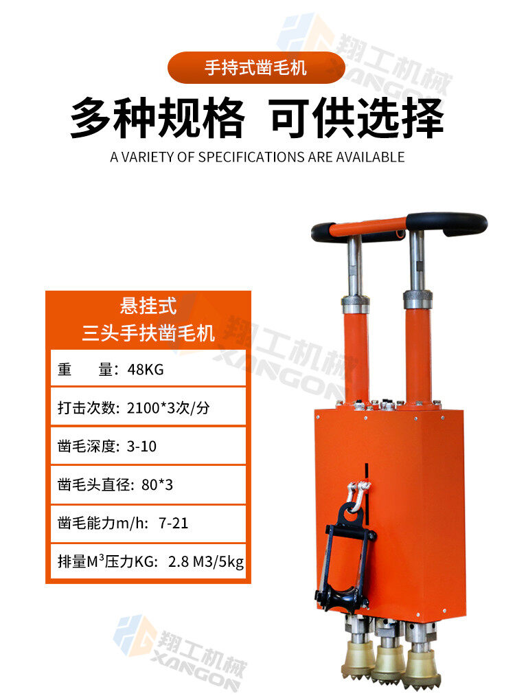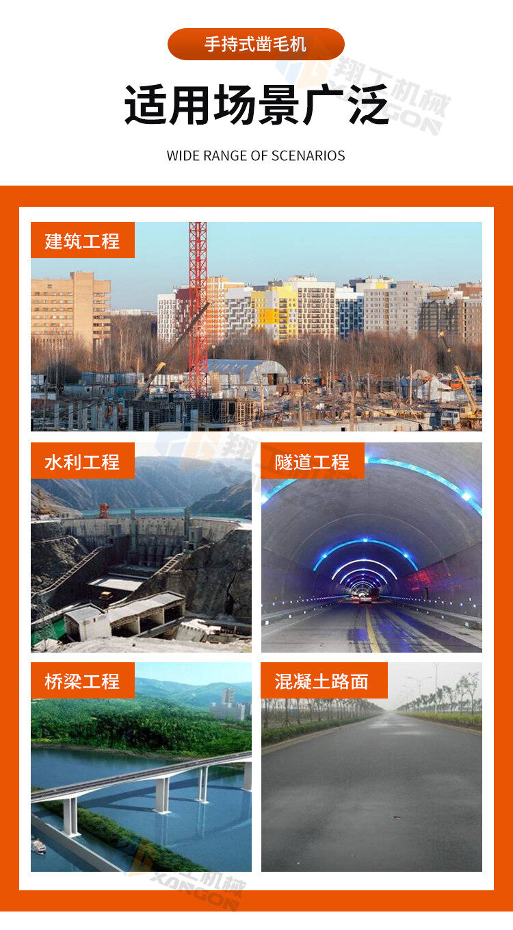 手持式懸掛鑿毛機(jī)機(jī)身有吊環(huán),鑿墻面的話吊起來(lái)使用,對(duì)平面、立面、弧形等多角度進(jìn)行鑿毛作業(yè),打擊力大、鑿深自如,應(yīng)用領(lǐng)域非常廣泛,又省力還方便。 主要適用于水庫(kù)、大壩滲漏,險(xiǎn)橋危橋、電廠、隧洞、高速公路、鐵路橋面以及箱梁混凝土等眾多領(lǐng)域 。主要是對(duì)混凝土表面進(jìn)行剔鑿,建筑物墻體、地面以及市政工程混凝土面層剔除、修補(bǔ)、翻新、加固等。