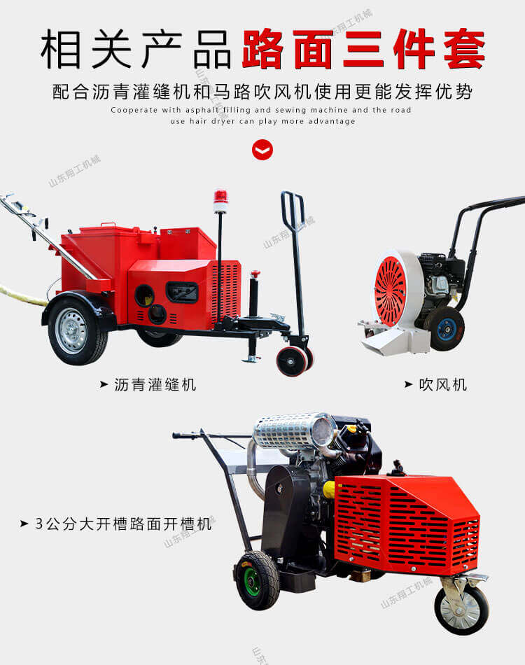 路面開槽機(jī)適用于瀝青路面灌縫修補(bǔ)前的裂縫打?qū)?。該設(shè)備具有使用方便,擴(kuò)縫速度快,刀片使用壽命長,擴(kuò)縫寬度可調(diào)等優(yōu)點(diǎn)。
