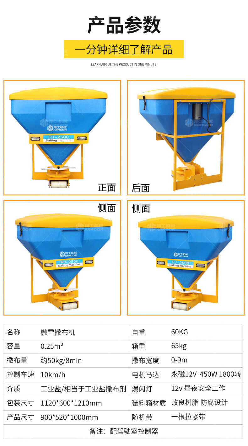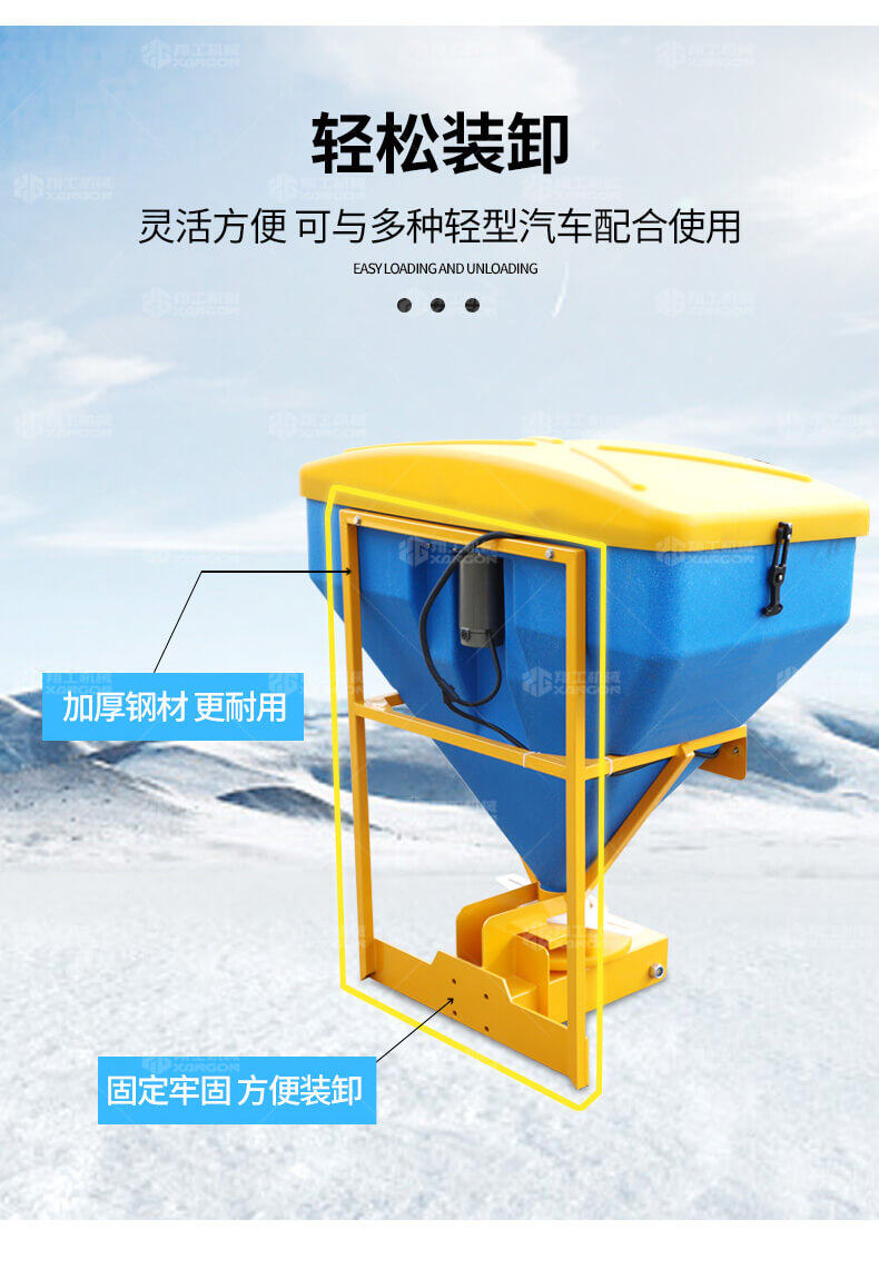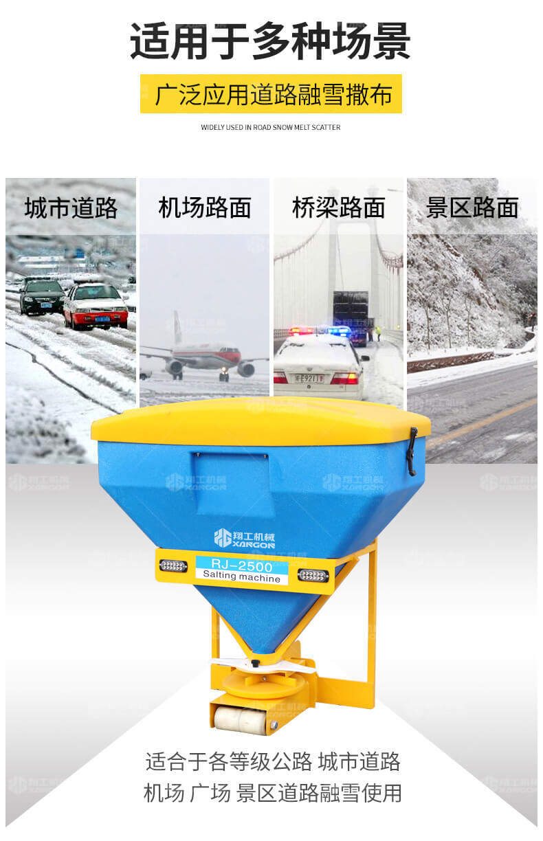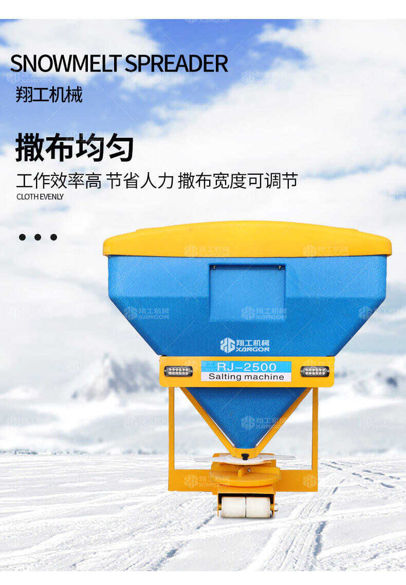 本產(chǎn)品用于道路、小區(qū)、廣場等地面積雪的融雪布撒,用以加速地面積雪融化,消除雪停自然融雪又結(jié)冰的風(fēng)險(xiǎn)。
