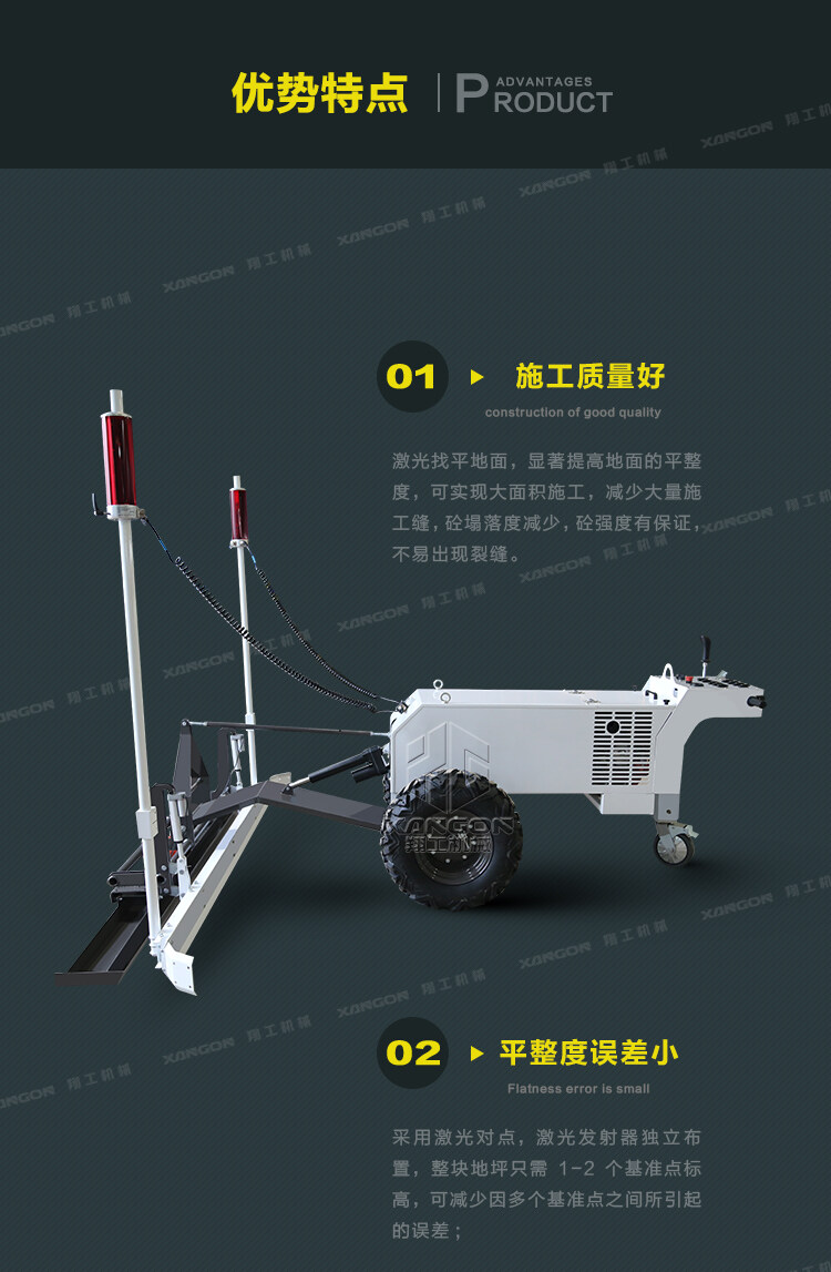 2,本產(chǎn)品的激光控制系統(tǒng)通過(guò)反饋調(diào)節(jié),實(shí)時(shí)監(jiān)控地坪的標(biāo)高,確保地坪的水平平整度和保證地坪的密實(shí)均勻;