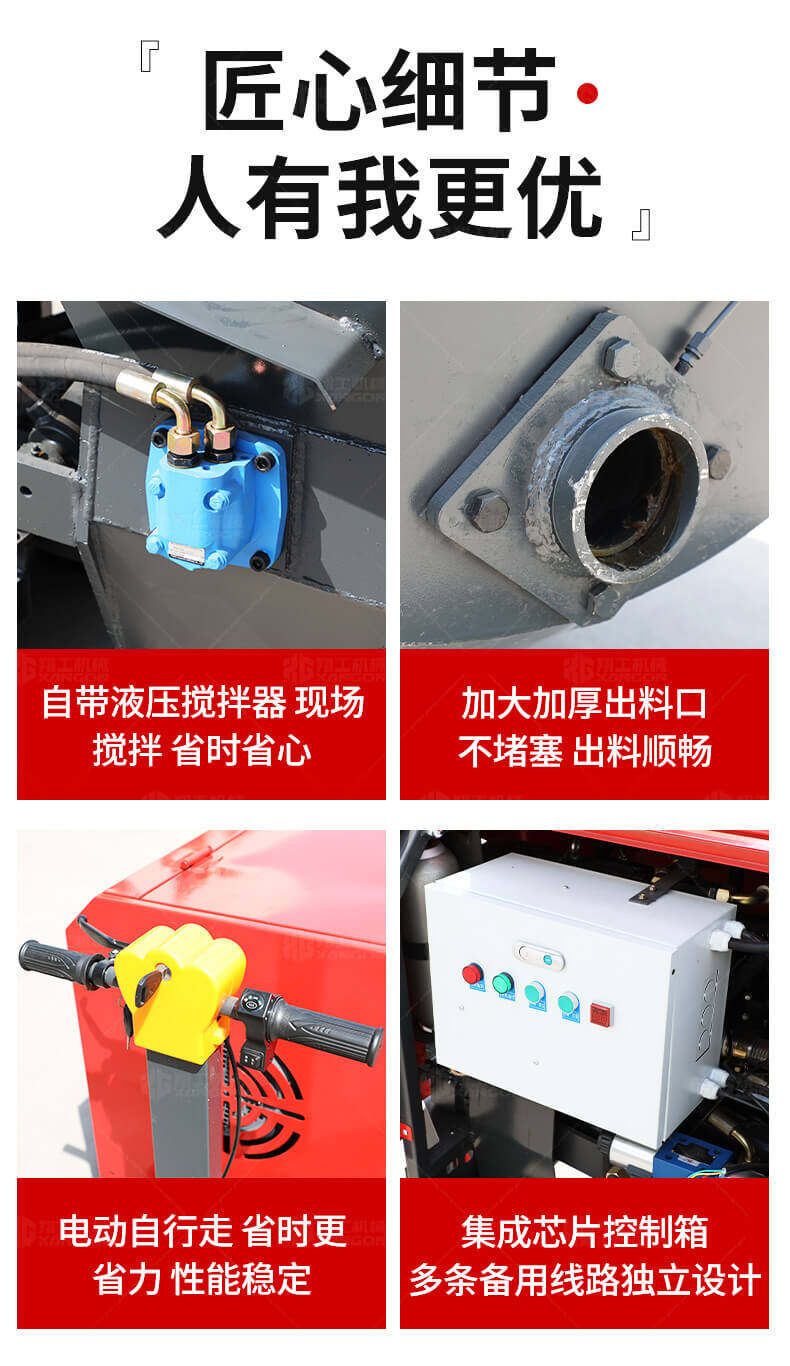 本產(chǎn)品為電動(dòng)行走臥式造型混凝土輸送泵,料斗帶攪拌功能,可泵送機(jī)制砂;風(fēng)冷散熱,散熱效果好;集成芯片控制箱,多條備用線路獨(dú)立設(shè)計(jì),不用擔(dān)心控制系統(tǒng)問題;操作部件采用24v 安全感應(yīng)電壓,安全可靠;S 彎采用兩個(gè)單向油缸,速度均勻。