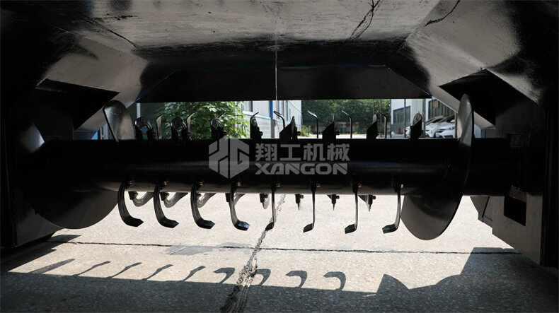 11. 翻拋能力強,翻拋滾筒由左右兩段反向螺旋和中間直段拋齒組成,旋轉的螺旋滾筒將三角形條垛物料向中間收攏,同時隨著滾筒旋轉使物料向后翻拋,從而實現(xiàn)頂層物料和內(nèi)部物料充分混合。