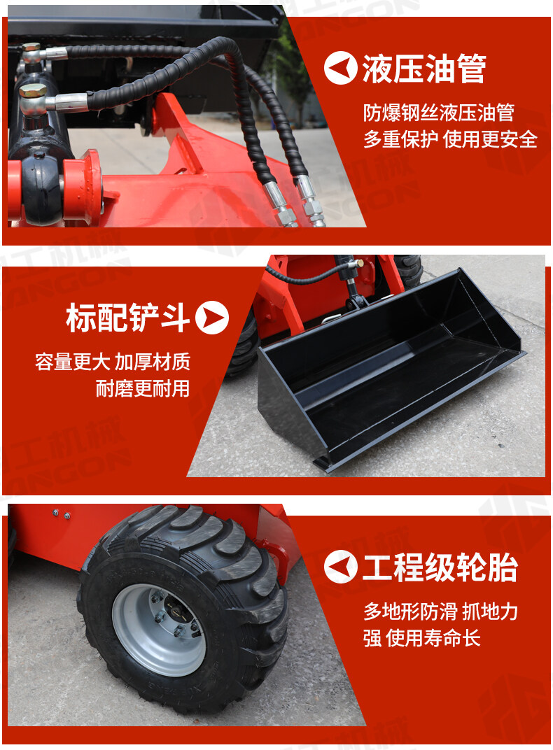 滑移裝載機(jī)液壓舉升,可以任意搭配輔具。
