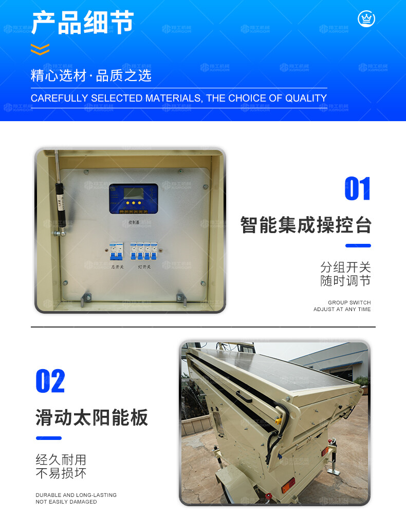太陽能燈車采用高效光伏板與鋰電池組合,白天蓄電,夜間自動(dòng)照明,節(jié)能環(huán)保。配備高亮度LED燈,照射范圍廣,適用于道路施工、應(yīng)急搶險(xiǎn)、夜間作業(yè)等場景。移動(dòng)靈活,防水防塵,無需外接電源,續(xù)航持久。結(jié)構(gòu)堅(jiān)固,操作簡便,是戶外臨時(shí)照明的理想選擇,兼顧經(jīng)濟(jì)性與實(shí)用性。