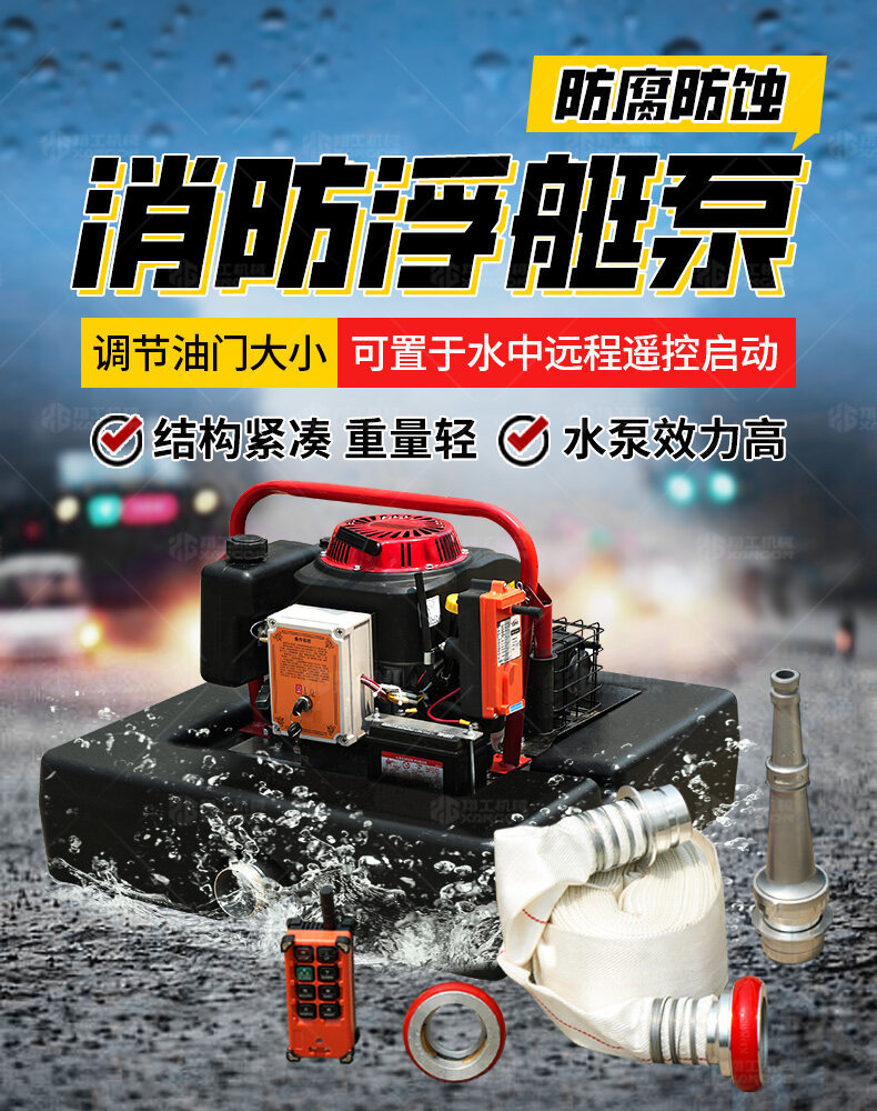 浮艇泵是一種便攜式水上抽水設(shè)備,專為消防、排澇設(shè)計(jì)。采用漂浮結(jié)構(gòu),可快速部署于河流、池塘等水源,抽水流量大(30-200m3/h),壓力穩(wěn)定,適應(yīng)復(fù)雜環(huán)境。輕便靈活,操作簡單,適用于消防滅火、抗旱灌溉及應(yīng)急排水,是野外作業(yè)和災(zāi)害救援的高效裝備。