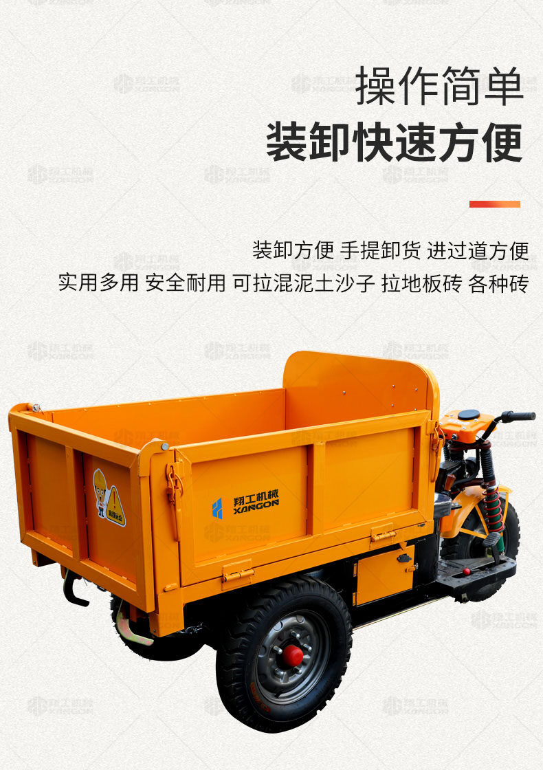 此款車適用于建筑工地、室內(nèi)裝修、養(yǎng)殖場(chǎng)、工廠等場(chǎng)所,運(yùn)輸沙子、水泥、土方、混凝土、建筑垃圾生活垃圾、養(yǎng)殖場(chǎng)動(dòng)物糞便、飼料等,體積小操作簡(jiǎn)單靈活,可原地360度轉(zhuǎn)圈,可進(jìn)入樓層、樓道、電梯、吊籃等各種狹小空間作業(yè),是您必不可少的裝卸助手。