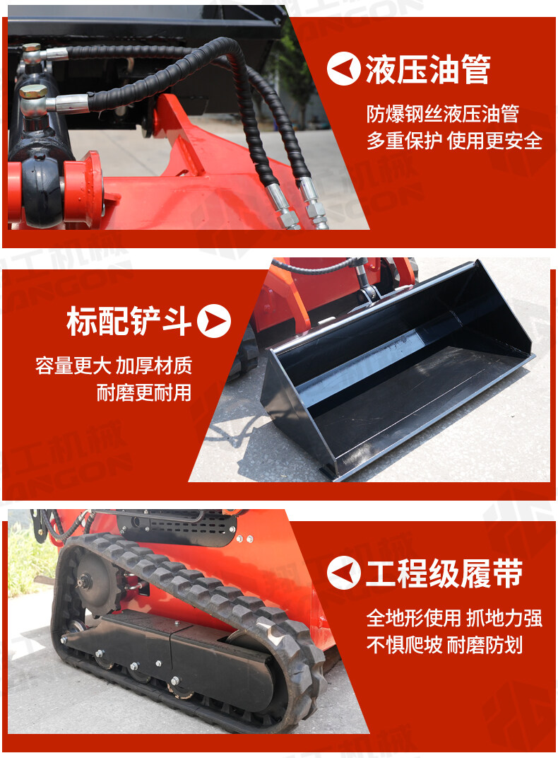 滑移裝載機(jī)液壓舉升,可以任意搭配輔具。