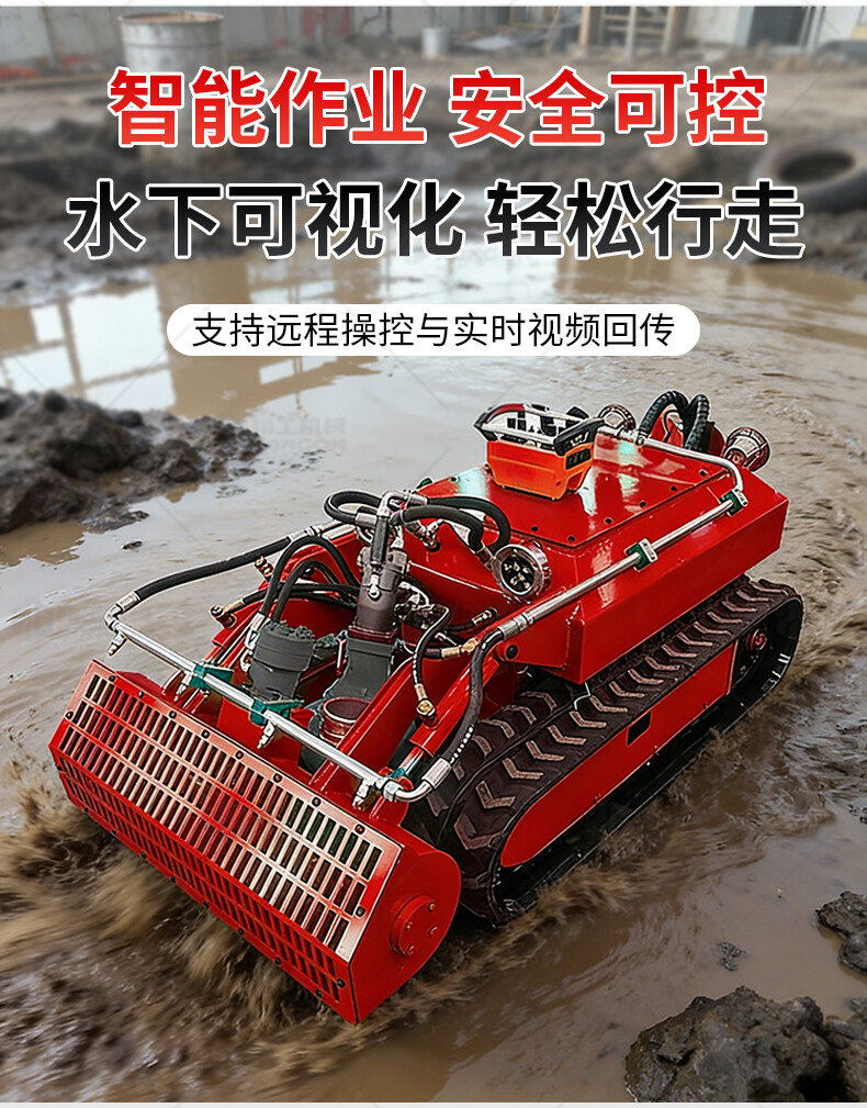 清淤機(jī)器人是一款用于水下沉積物清理的智能化特種作業(yè)設(shè)備。它采用遙控或自主導(dǎo)航技術(shù),通過抽吸、絞切等方式高效清除河道、水庫、港口等水域的淤泥與雜物。具備環(huán)境感知與自適應(yīng)能力,可實(shí)現(xiàn)精準(zhǔn)、低擾動的環(huán)保清淤,大幅提升作業(yè)安全性與效率,是現(xiàn)代化水域治理與維護(hù)的核心裝備。